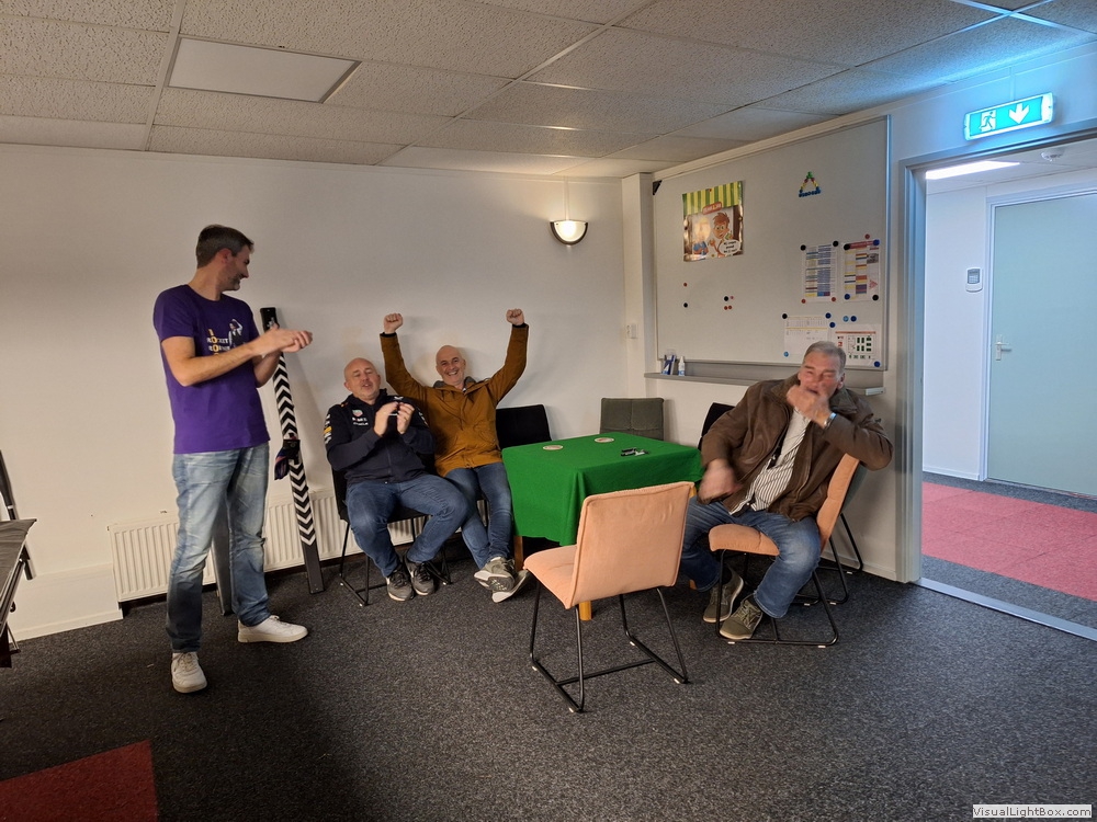 Omdat het de 1e keer was zaten we te dubben hoe met de tijd om te gaan. dus besloten we om de tijd los te laten en gewoon 3 frame's per partij te spelen.